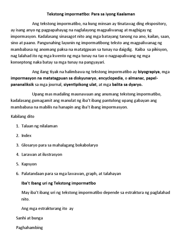 Tekstong Impormatibo Para Sa Iyong Kaala Pdf