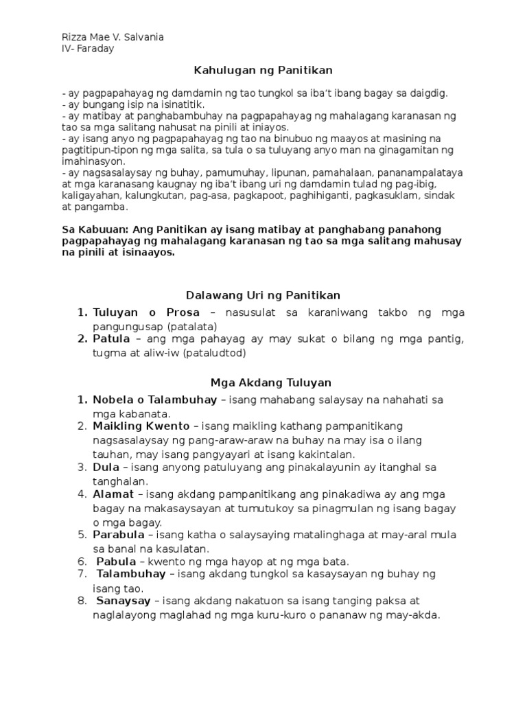 May hugismay punto de bista at nakapagpapahaba ng interes ng mambabasa ang isang sulating pampanitikan. Uri Ng Panitikan. Nanggaling ito sa salitang-ugat na titik na ikinabit ang unlaping.